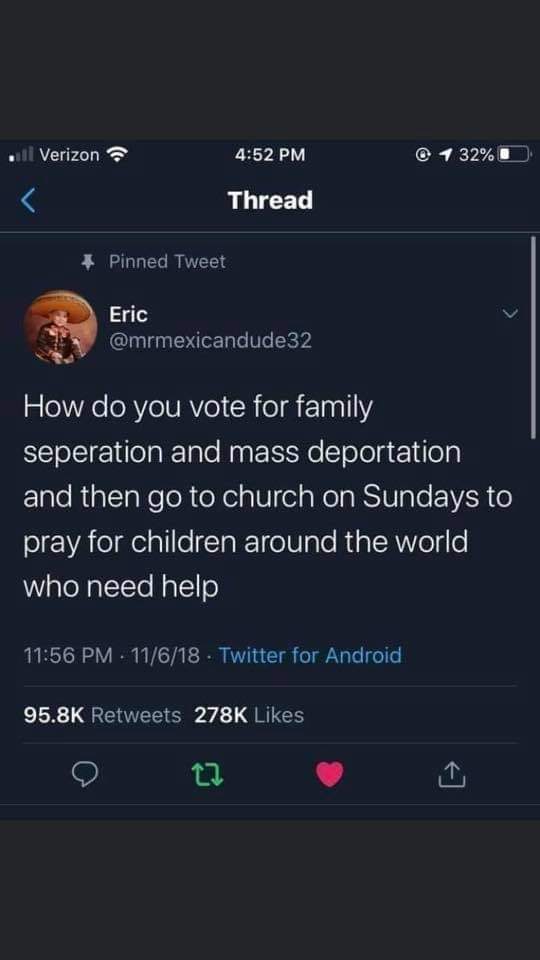 And invite yourself into someone else’s country on a “mission trip” to try and help them find Jesus??? And then won’t even allow them in “your” country??? Make it make sense please leticia Jaime Sin categoría 20 agosto, 2020 1 minuto Compártelo: Compartir en X (Se abre en una ventana nueva) X Comparte en Facebook (Se abre en una ventana nueva) Facebook Me gusta Cargando... Relacionado Publicado por leticia Jaime La alegria de mi fe esta en Jesus Ver todas las entradas de leticia Jaime Publicado 20 agosto, 2020